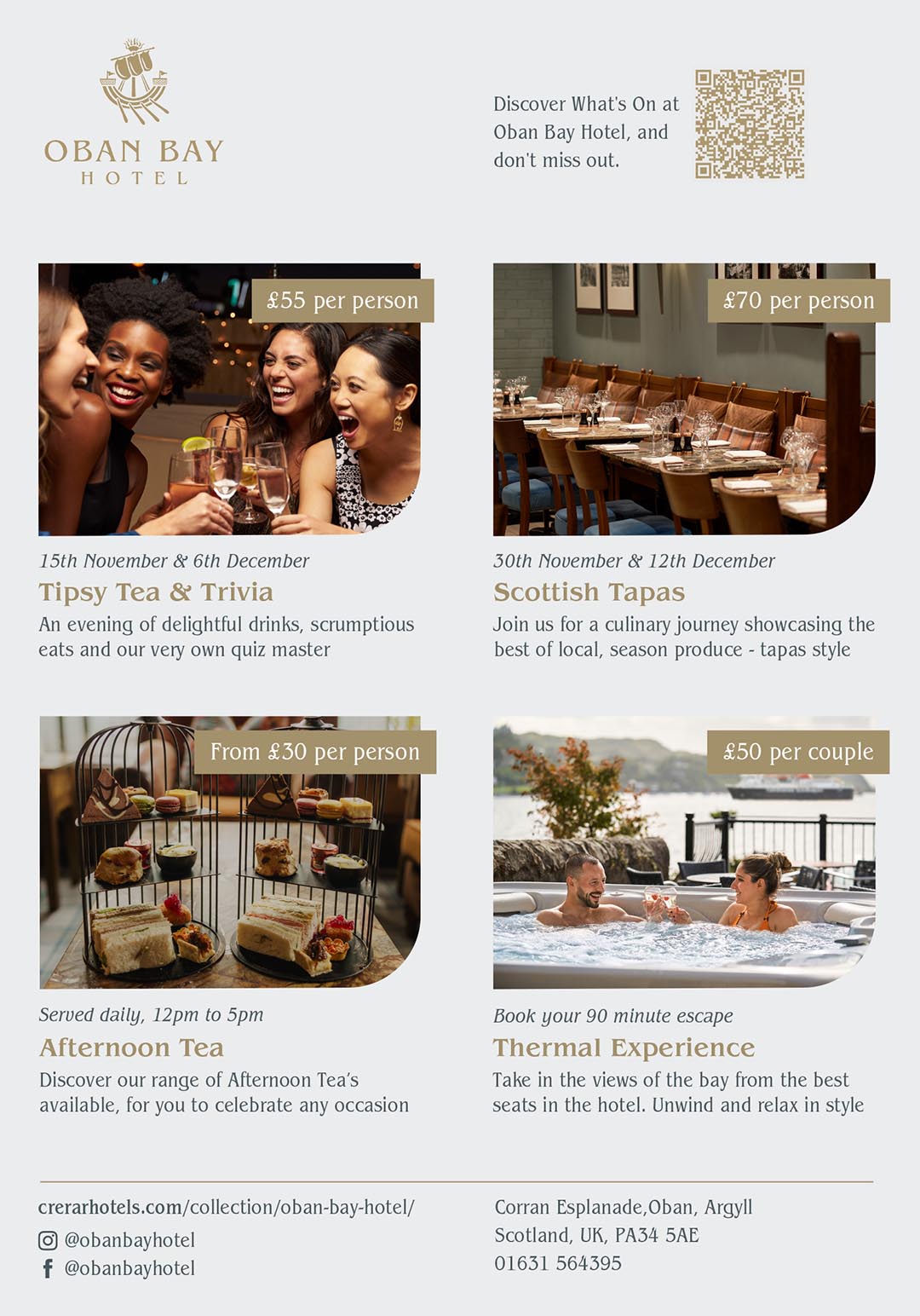 One day is never enough to enjoy all that Oban has to offer! So if you are looking to stay a little longer to make the most of your visit we’d love to introduce you to some of our hotel and accommodation partners conveniently located in the heart of the action.